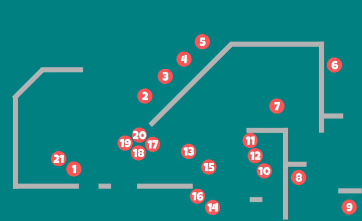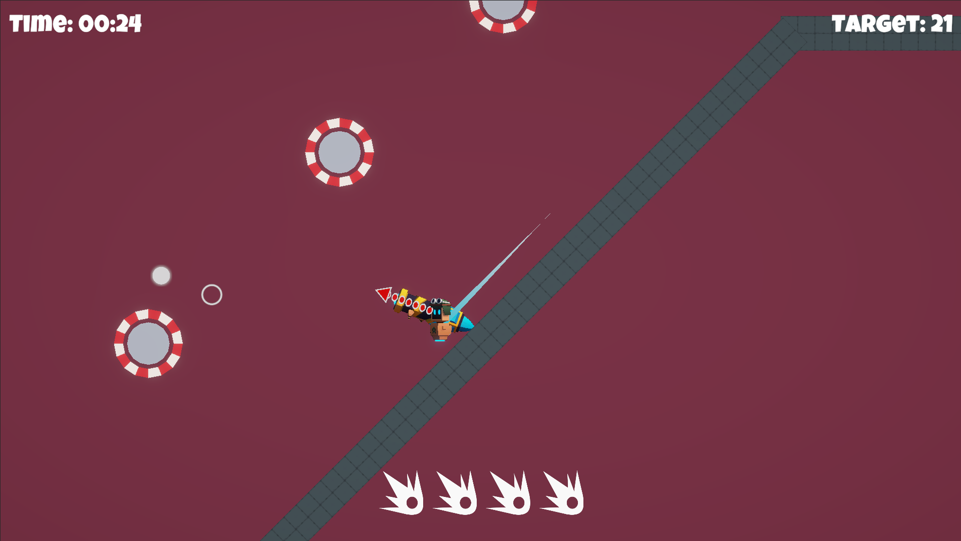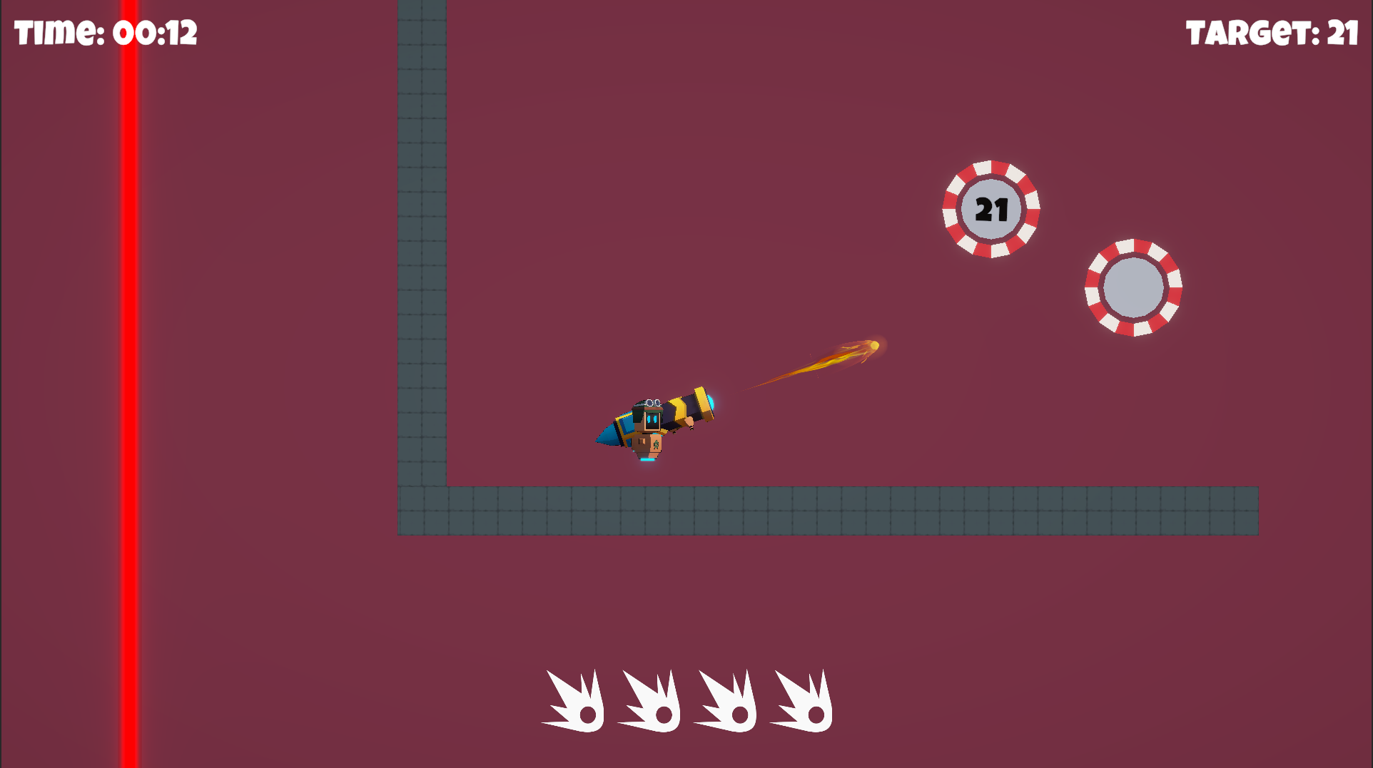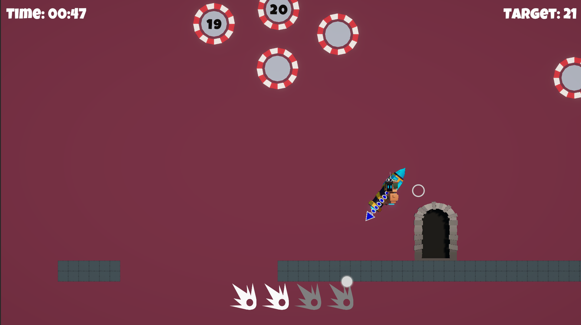 This is a short 1–2 minute game built around a drag-and-release movement mechanic. Blast yourself around the arena and hit all the hidden targets in the correct countdown order (21 > 20 > 19 > .... > 1).
